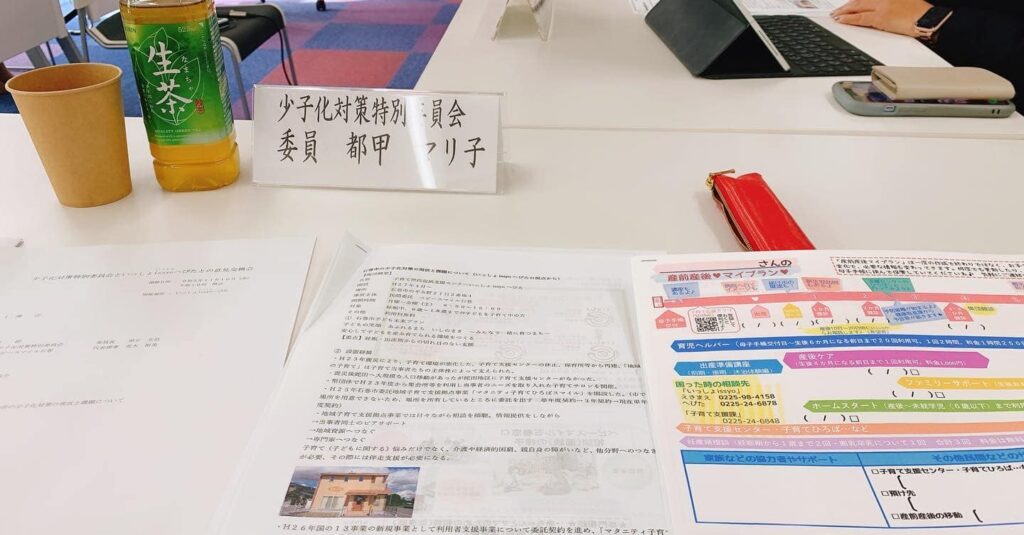 本日は、少子化対策特別委員会で子育て世代包括支援センターissyoへびたさんにお伺いしまして、意見交換会をさせていただきました。