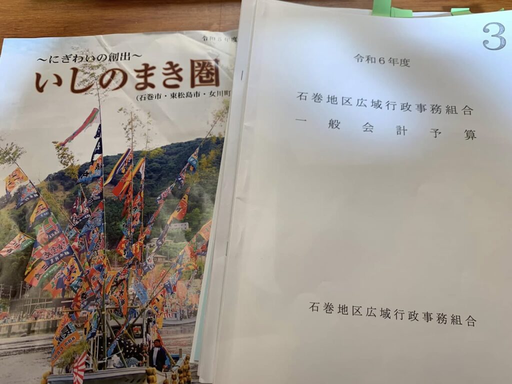 私は広域で毎年出している、圏域の紹介パンフレット「いしのまき圏」について、数十年に渡りデザインの更新がされていないことから、圏外の方に石巻圏域をご紹介するのに魅力的なパンフレットにするためデザイン更新の計画の必要性や、一部記載情報の間違いの訂正などを求める質疑を行いました。