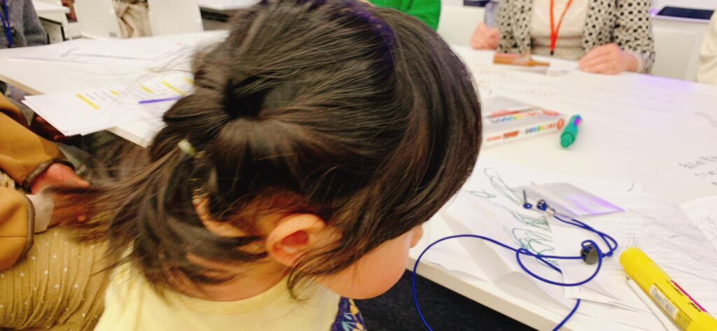 後半のワークショップでは、彼女も一生懸命メモを取って(らくがきして)参加しました。