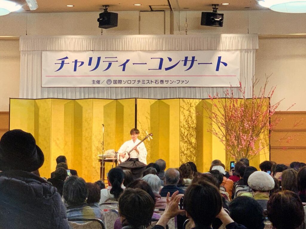 昨日は国際ソロプチミスト石巻サン・ファンによるチャリティコンサートが行われ、津軽三味線奏者の浅野祥さんの演奏が行われました。